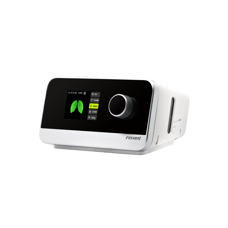 CPAP automático iBreeze de Resvent con humidificador integrado, ajuste automático de presión y tecnología IPR para mayor comodidad durante la terapia de apnea del sueño.