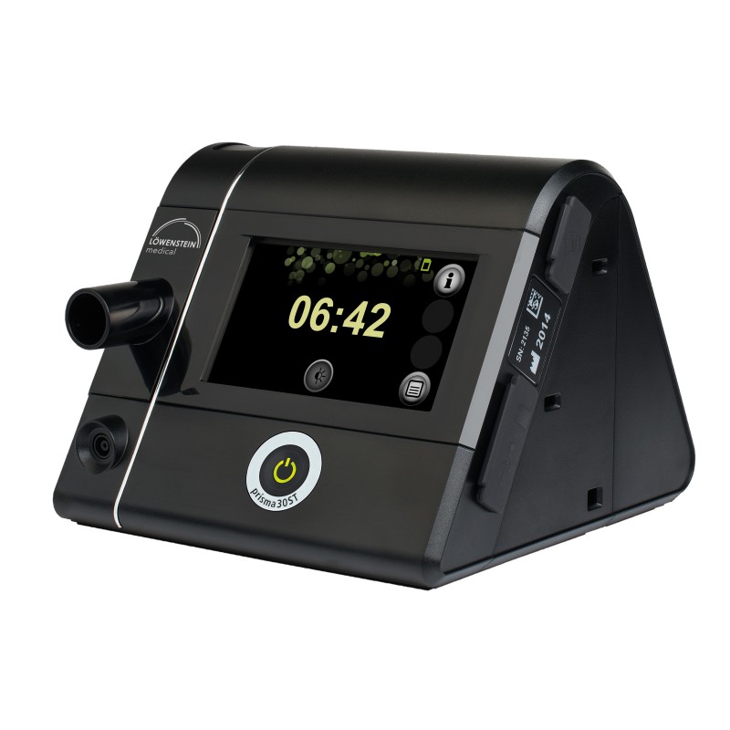 Dispositivo de terapia BiLevel-ST con volumen objetivo ajustable, diseñado para pacientes con insuficiencia respiratoria (por ejemplo, hipoventilación postural) y/o EPOC que presentan trastornos respiratorios del sueño.